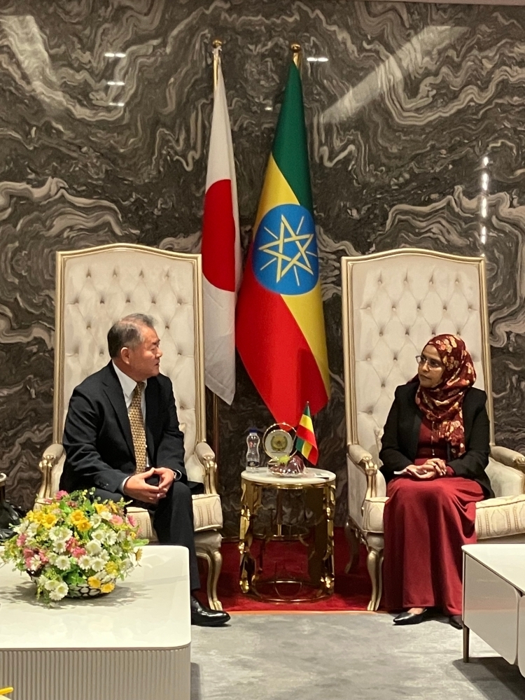 - また、尾上補佐官は、エチオピアにおいて、アイシャ・モハメド・ムサ国防大臣(Engineer AISHA Mohammed Mussa, Minister of Defence of the Federal Democratic Republic of Ethiopia)、アセファ•アビュ国家情報治安局(NISS)副長官(Dr. Assefa Abiyu, Deputy Director General of National Intelligence and Security Service (NISS))を表敬し、地域情勢等について意見交換を行い、尾上補佐官から、FOIP推進の重要性を述べた他、ユースタス・チウォンAU委員会政治・平和安全保障局(PAPS)平和支援活動部(PSOD)評価•訓練ユニット長(Mr. Eustace Chiwombe, Head Policy, Evaluation and Training (PET) Unit in the AUC Peace Support Operations Division)等のアフリカ連合関係者と会談し、安全保障分野における協力等について意見交換を行いました。また、エチオピアPKOセンター、エチオピア国防軍博物館を視察し、関係者との間で意見交換を行いました。