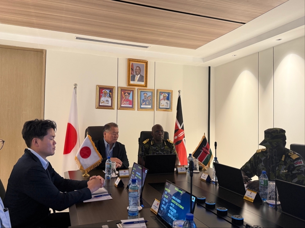 - 続いて、尾上補佐官は、ケニアにおいて、ムサリア・ムダバディ内閣筆頭長官兼外務・ディアスポラ担当長官(Hon. Dr. Musalia MUDAVADI EGH, Prime Cabinet Secretary & Cabinet Secretary for Foreign and Diaspora Affairs of the Republic of Kenya)及びモニカ・ジュマ国家安保担当大統領補佐官(次期UNODC事務局長)(Amb. Monica Juma, DPhil, CBS, National Security Advisor)を表敬し、地域情勢等について意見交換を行った他、チャールズ・カハリリ国防軍司令官(Gen Charles Kahariri EGH CBS ‘nwc'(USA) ‘psc'(K) Chief of the Defence Forces)と会談し、FOIP推進の協力を含め、安全保障分野における協力等について幅広い意見交換を行いました。また、日本政府がPKO訓練コース支援や講師派遣などを行っている国際平和支援訓練センター及び人道平和支援学校、日本政府がコンテナターミナル建設や経済特区開発等の支援を行ってきたモンバサ港、ムトンゲ海軍基地を視察し、加えて、ケニアで活動する日本企業関係者等の在留邦人との間で意見交換を行いました。